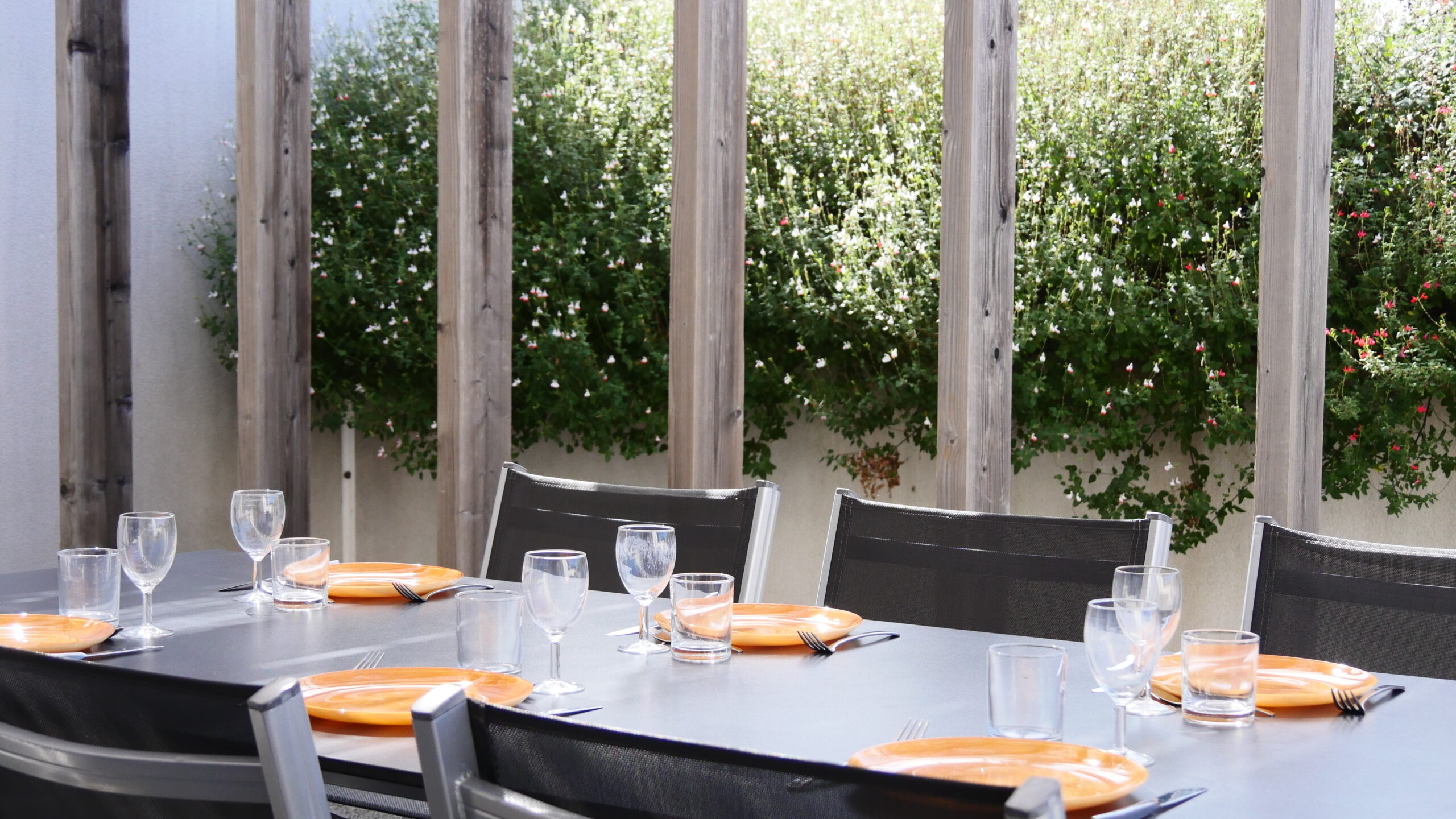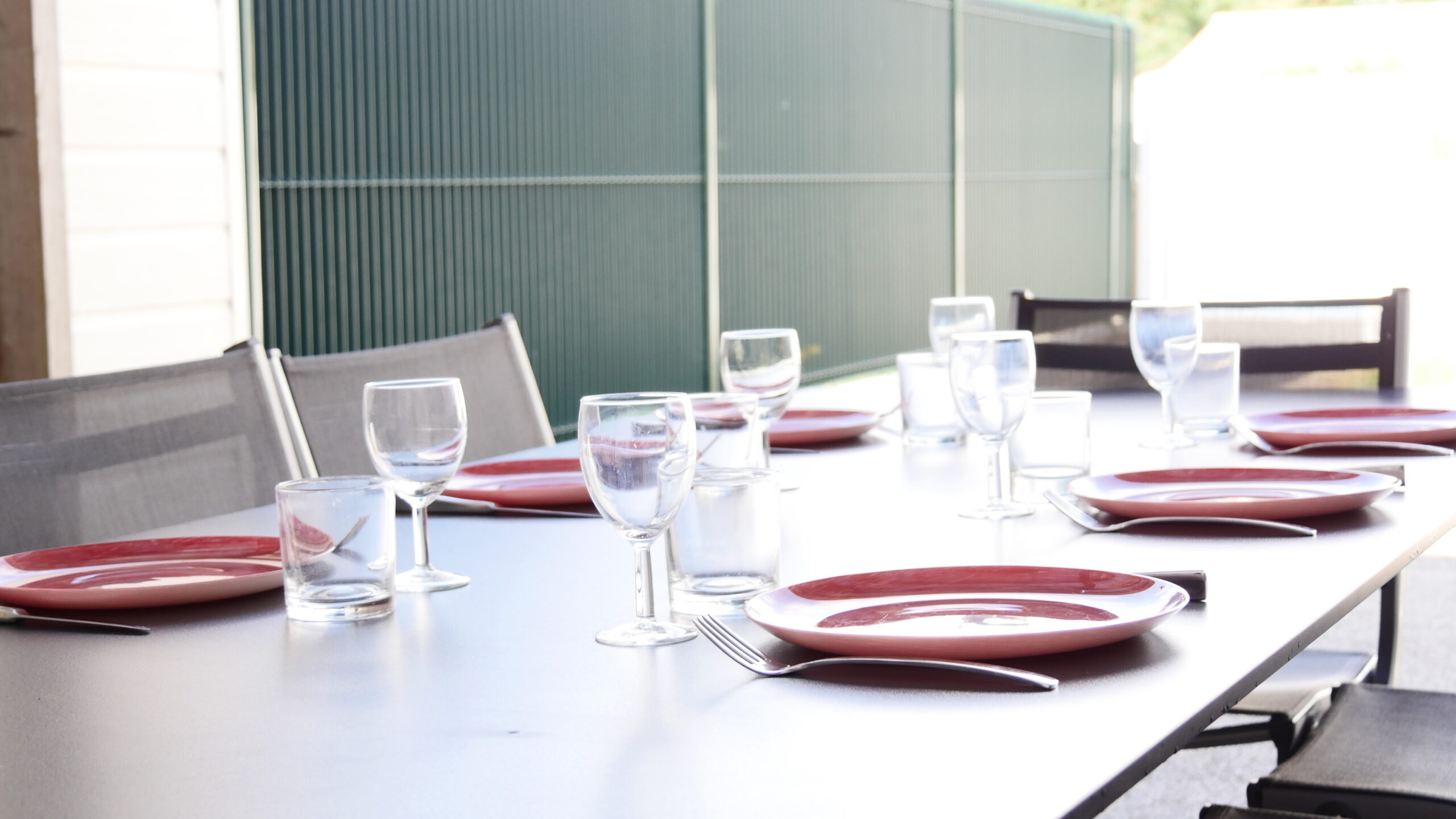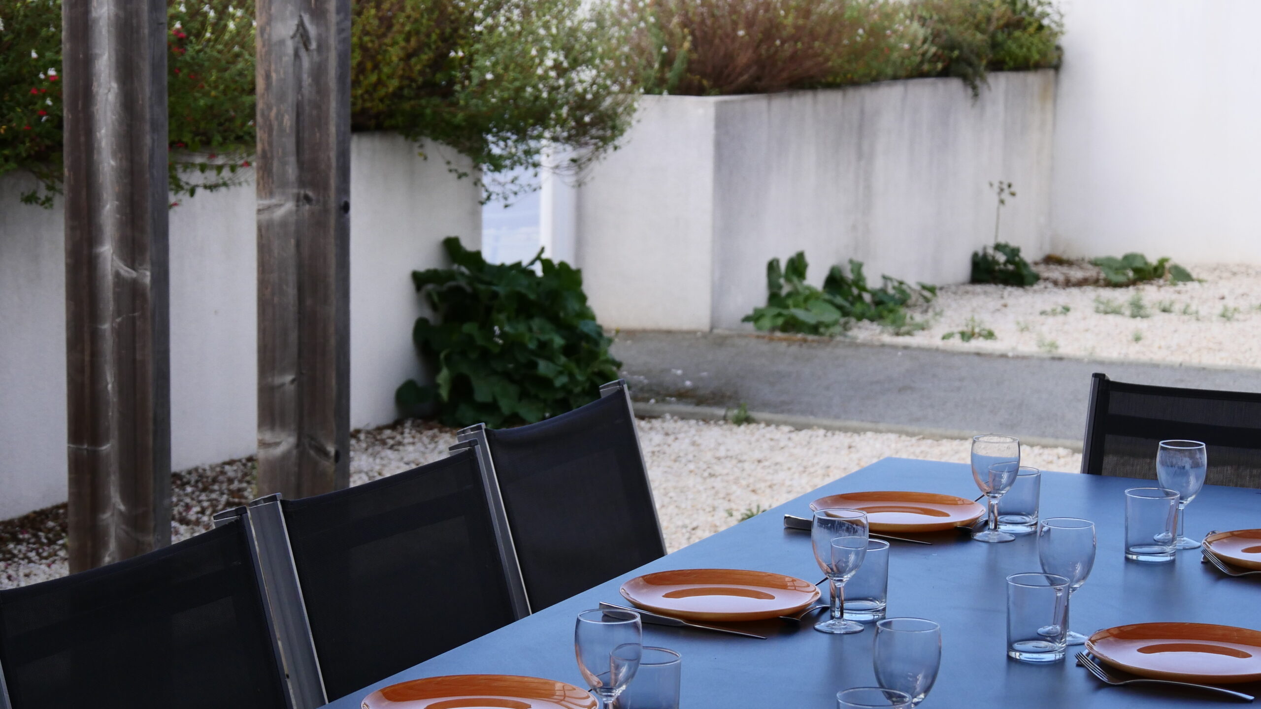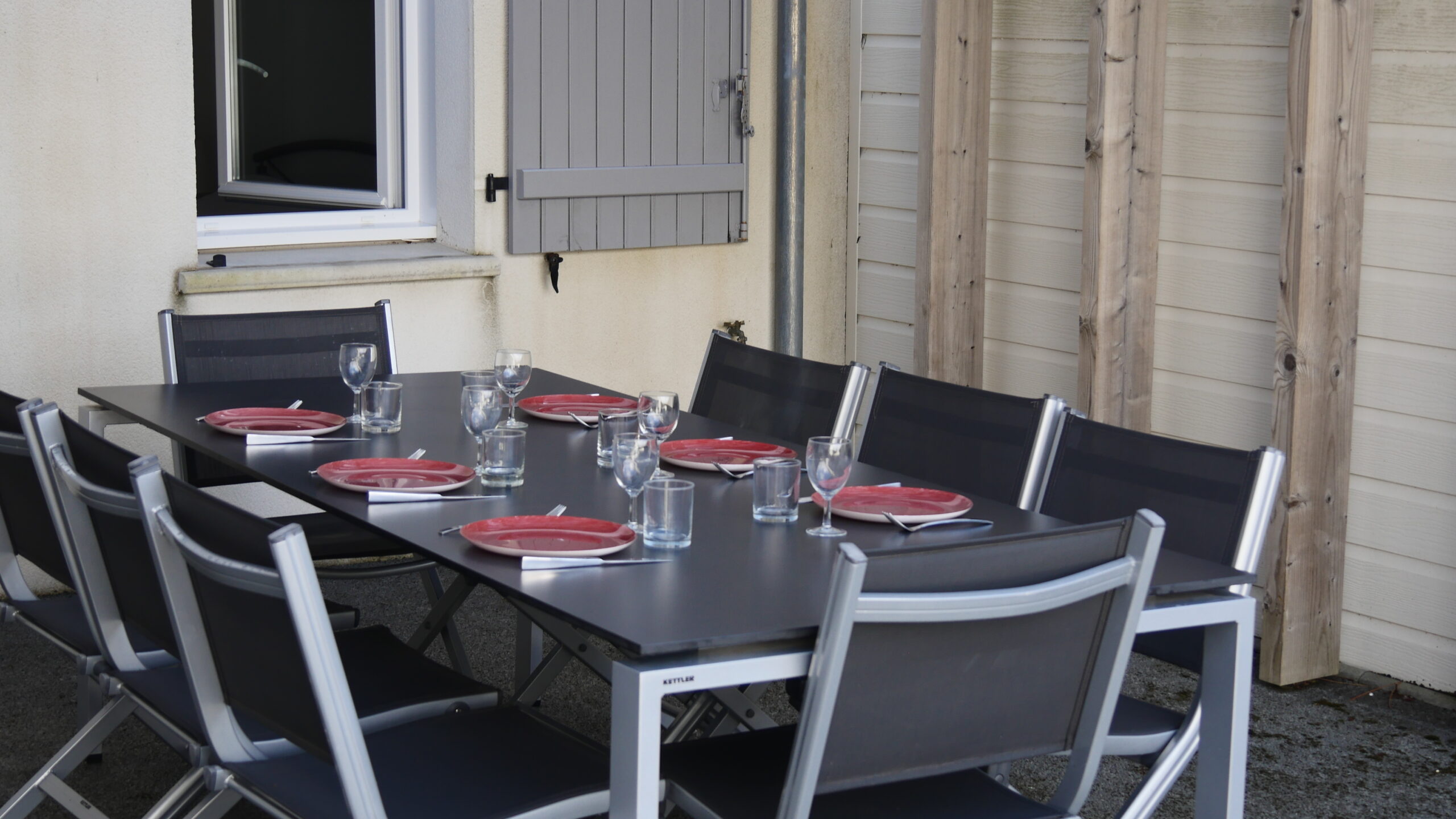 Exposée sud et protégée par des canisses, la terrasse est idéale pour des repas d’extérieur au calme. Nous mettons à votre disposition un barbecue et le mobilier de jardin peut accueillir jusqu’à 8 convives.