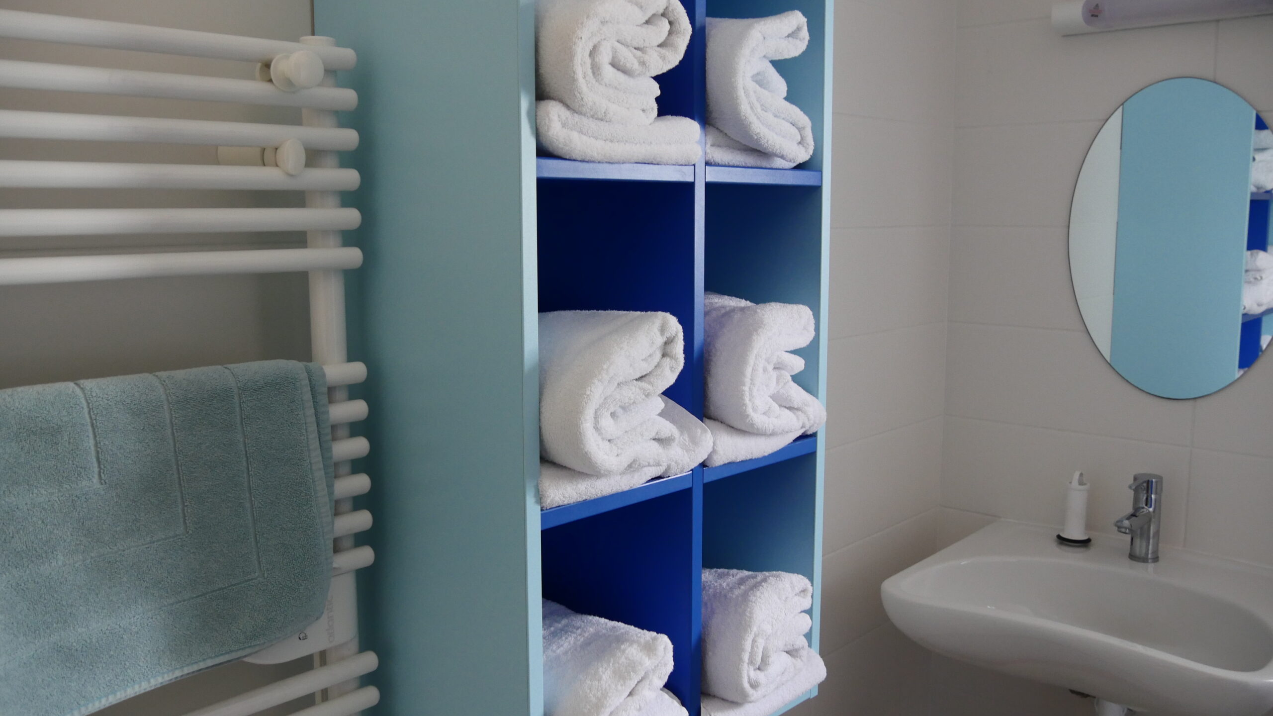 Adaptée aux normes handicapé la salle de bain est composée d’une douche à l’italienne, d’un WC et d’une vasque. Un deuxième WC séparé est également présent dans chaque villa.